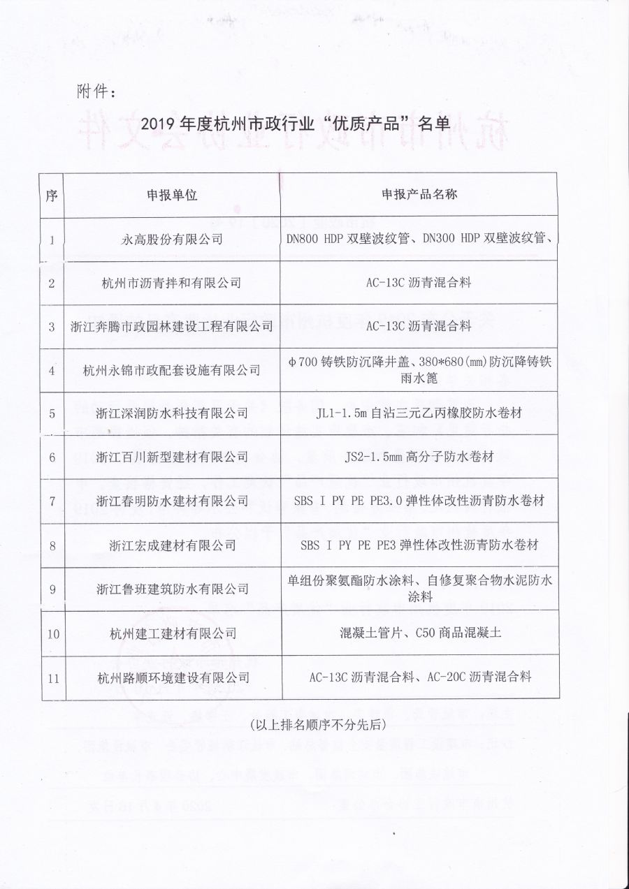 杭州市政優質產品文件(附)